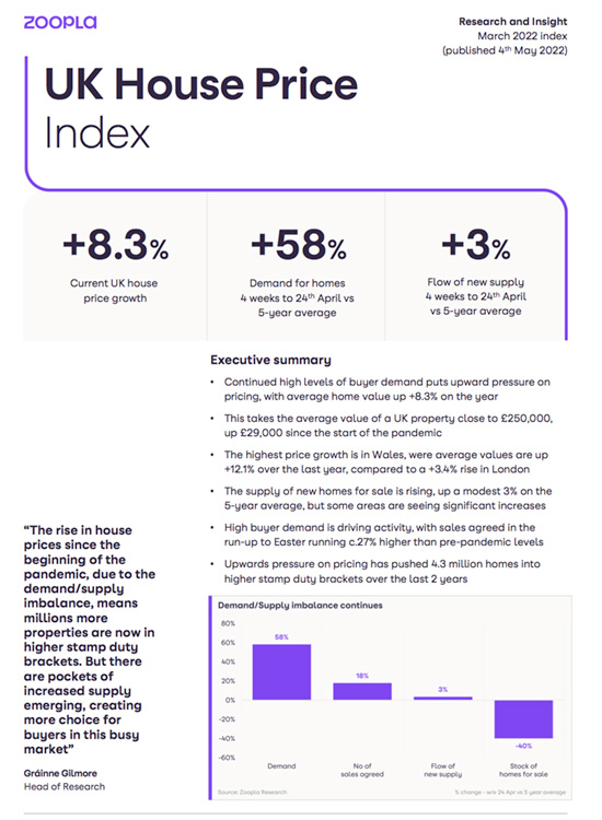 UK House Price by ZOOPLA March 2022