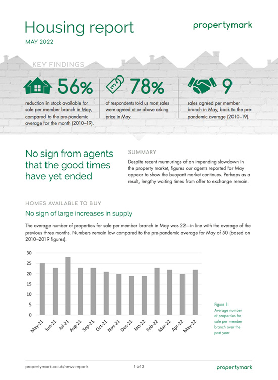 Despite recent murmurings of an impending slowdown in the property market, figures our agents reported for May appear to show the buoyant market continues. Perhaps as a result, lengthy waiting times from offer to exchange remain.