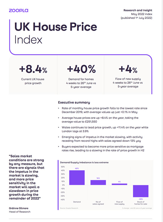 UK House Price by ZOOPLA June 2022