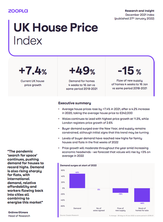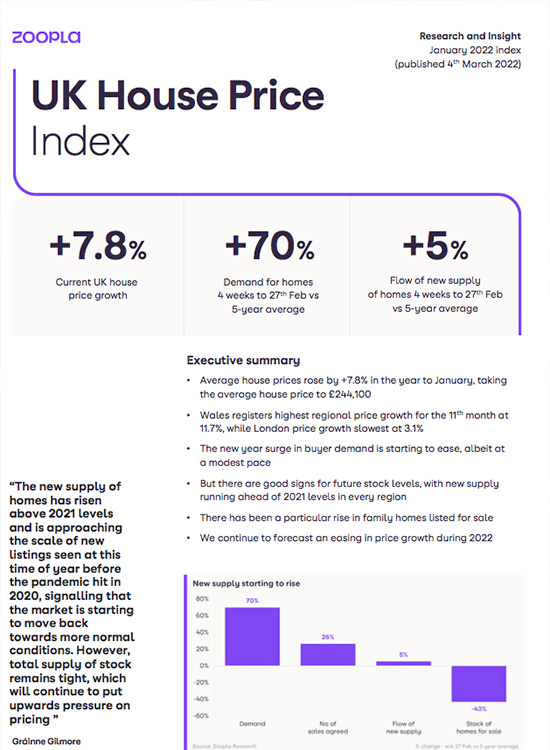UK House Price by ZOOPLA January 2022