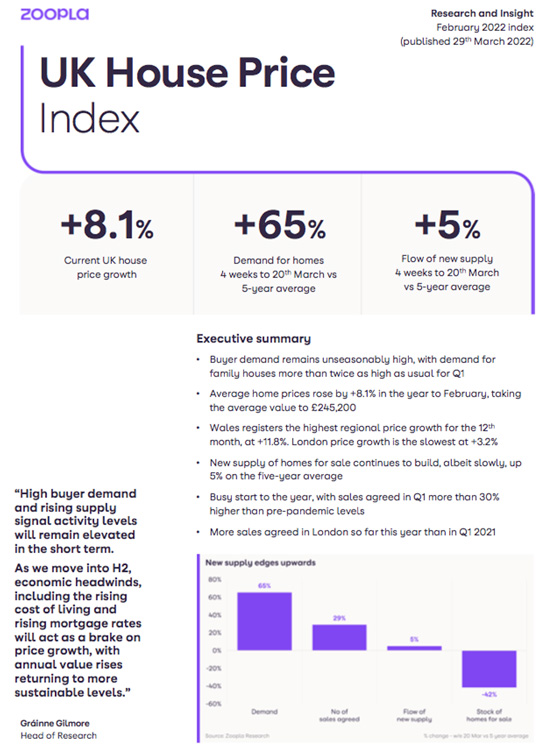 UK House Price by ZOOPLA February 2022
